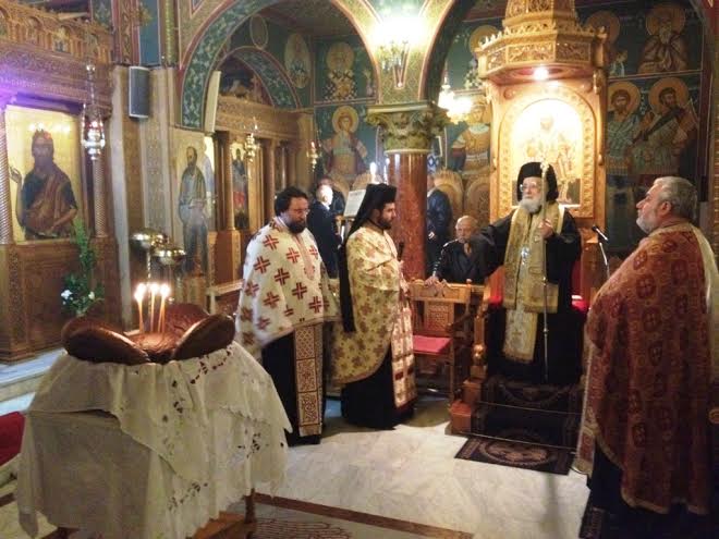Την κυριώνυμο ημέρα, τελέσθηκε θεία Λειτουργία και λιτάνευση του εικονίσματος της Θεοτόκου, ιερουργούντος του Μητροπολίτου Βελεστίνου Δαμασκηνού. Προ της απολύσεως, ο Μητροπολίτης επέδωσε τους διορισμούς των νέων εκκλησιαστικών συμβούλων για την τριετία 2014-2016 και ενεχείρισε το μετάλλιο τιμής της ενορίας σε δύο παλαιούς εκκλησιαστικούς συμβούλους, τον Θεόδωρο Παπαδόπουλο που διετέλεσε αντιπρόεδρος του εκκλησιαστικού συμβουλίου και την Δήμητρα Σπανάκη που υπηρέτησε ως ταμίας αυτού, ενώ τους επαίνους επέδωσαν αντίστοιχα, ο Δήμαρχος Ηλιουπόλεως και ο Πρωτοπρεσβύτερος Σπυρίδων Μανταδάκης. Προηγουμένως απονεμήθηκε τιμητική πλακέτα εκ μέρους της ενορίας, στην πρεσβυτέρα Μαρία χήρα πρεσβυτέρου Δημητρίου Παλούκη, για την συμπλήρωση 100 ετών της ζωής της. Ο Μητροπολίτης Δαμασκηνός, συγχαίροντας την εκατοντάχρονη πρεσβυτέρα, είπε «πίσω από κάθε μεγάλο έργο κρύβεται μια γυναίκα. Στο έργο της σωτηρίας μας υπήρξε η Παναγία, την οποία και σήμερα τιμούμε στην ενορία σας, αλλά και πίσω από το έργο ενός ιερέως υπάρχει η θαυμαστή αρωγή μια πρεσβυτέρας που είναι ο Κυρηναίος, στο Γολγοθά της Ιερωσύνης». Ο πρόεδρος του εκκλησιαστικού συμβουλίου Αρχιμανδρίτης Σεραφείμ Δημητρίου, κατά την ανακοίνωση των αποφάσεων για την απόδοση τιμής στα ανωτέρω πρόσωπα, ανέγνωσε και επιστολή του Μητροπολίτου Φωκίδος Αθηναγόρα, με την οποία συγχαίρει για την τιμή της εκ Δωρικού Φωκίδος πρεσβυτέρας, και εύχεται εις αυτήν αναφερόμενος στην διακονία του μακαριστού πρεσβυτέρου Δημητρίου, στην ορεινή Δωρίδα.