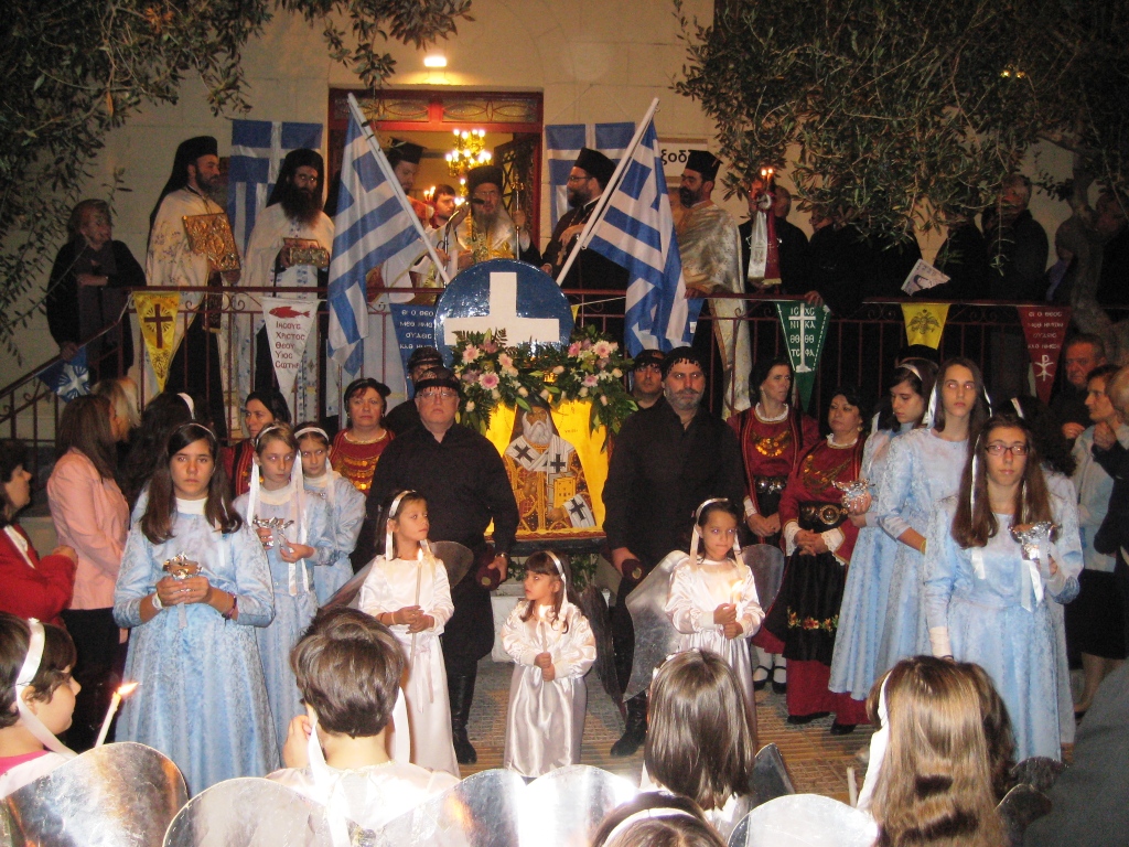 Ανήμερα το απόγευμα, ο Ηγούμενος της Μονής Ασωμάτων Πετράκη, Επίσκοπος Θαυμακού Ιάκωβος, χοροστάτησε στον μεθεόρτιο εσπερινό και προεξήρχε της λιτανεύσεως των τιμίων λειψάνων και της ιεράς εικόνος του θαυματουργού Αγίου, παρουσία του Δημάρχου Ηλιουπόλεως Βασιλείου Βαλασόπουλου, του πρώην Δημάρχου Ιωάννου Αναγνώστου, του αντιδημάρχου Κωνσταντίνου Σεφτελή και πολλών Δημοτικών Συμβούλων. Στην προσλαλιά του προ της απολύσεως ο επίσκοπος, προέτρεψε τους πολυπληθείς πιστούς να έχουν ελπίδα και εμπιστοσύνη στο Θεό μέσα στα δύσκολα της περιόδου που διανύουμε, αναφέροντας πως οι λαοί της Ευρώπης, χρωστούν στην Ελλάδα πολλά, γιατί ήταν πάντα το ανάχωμα σε κάθε προσβολή εναντίον της, από της εποχής ακόμα και των Περσικών Πολέμων.
